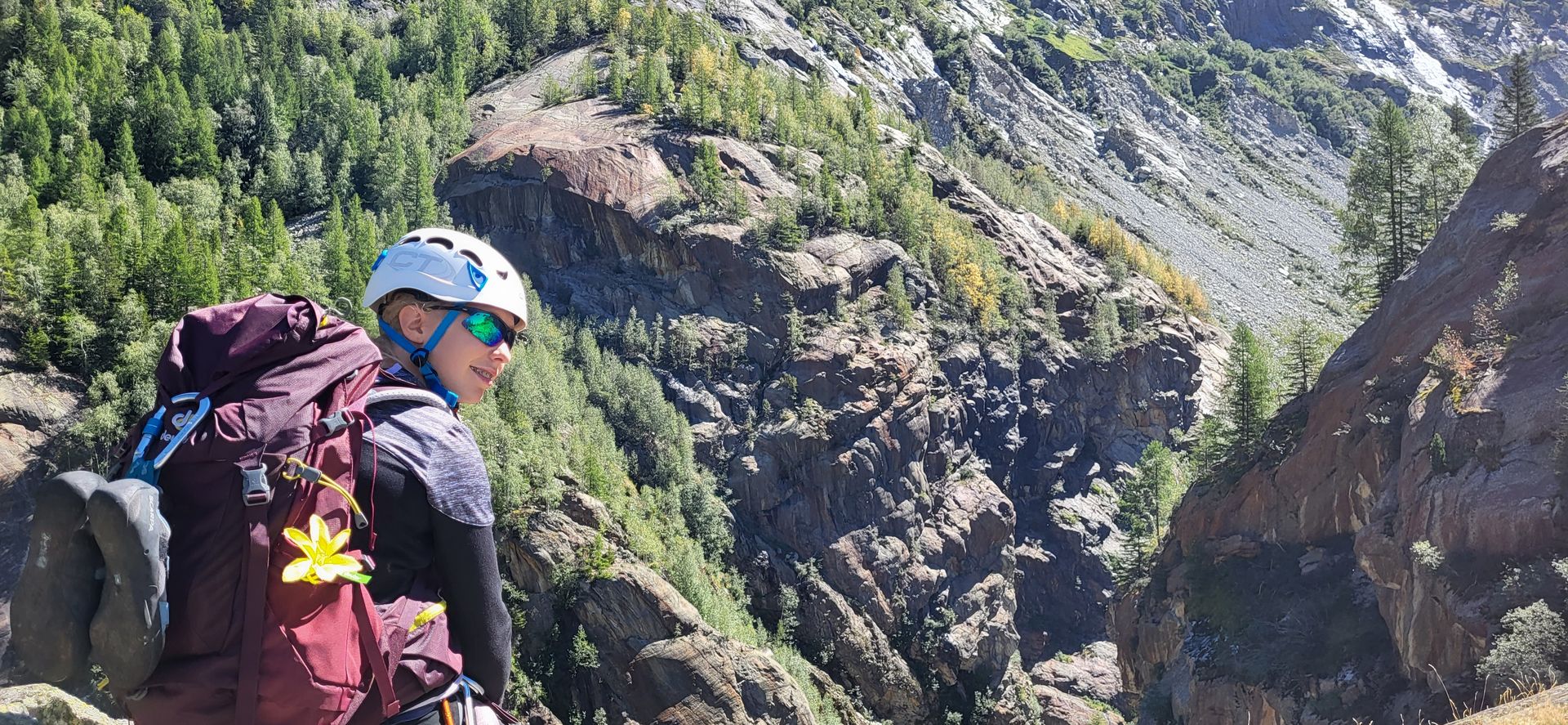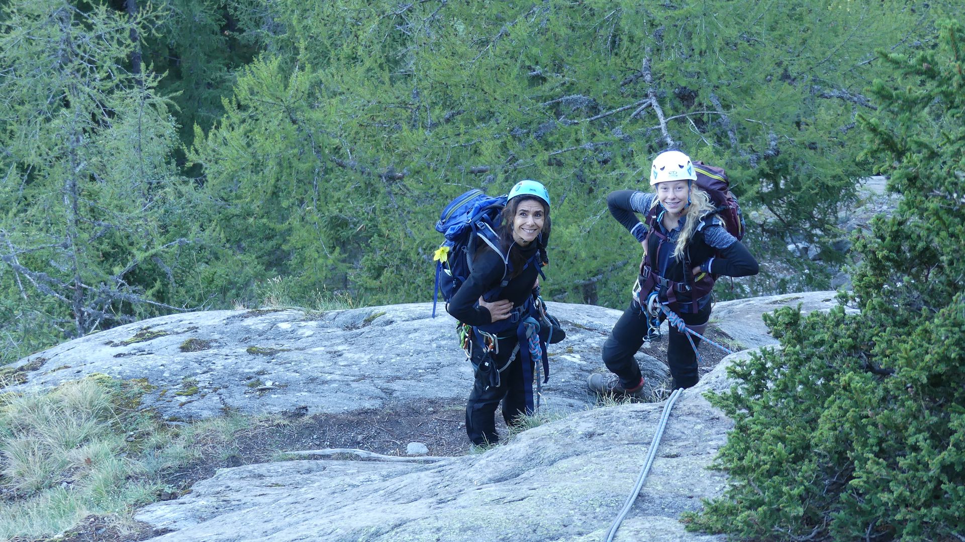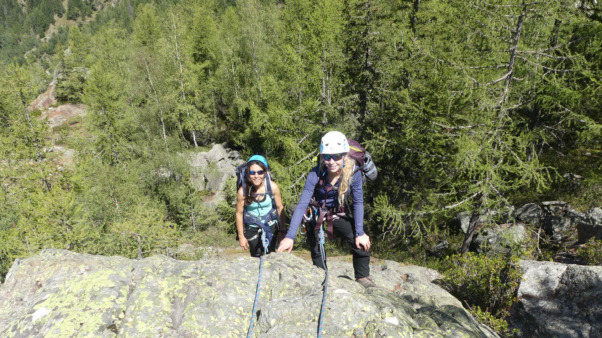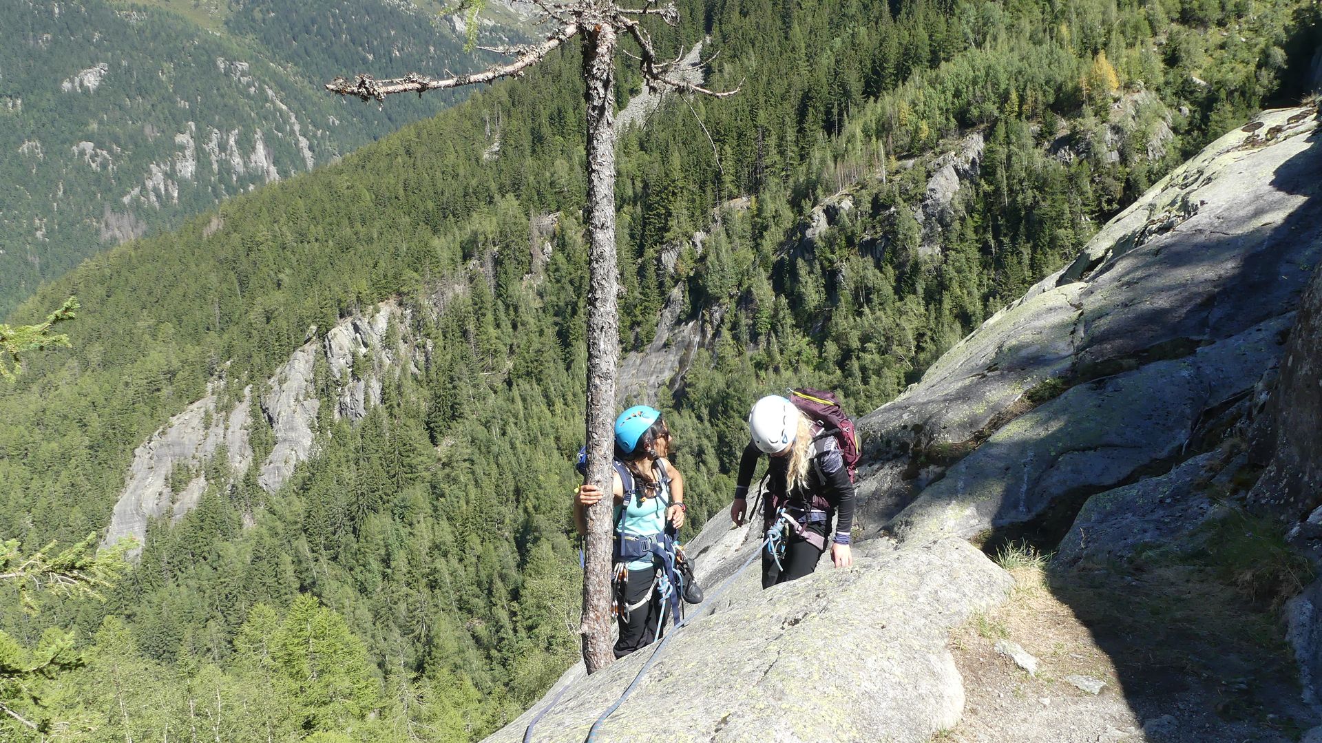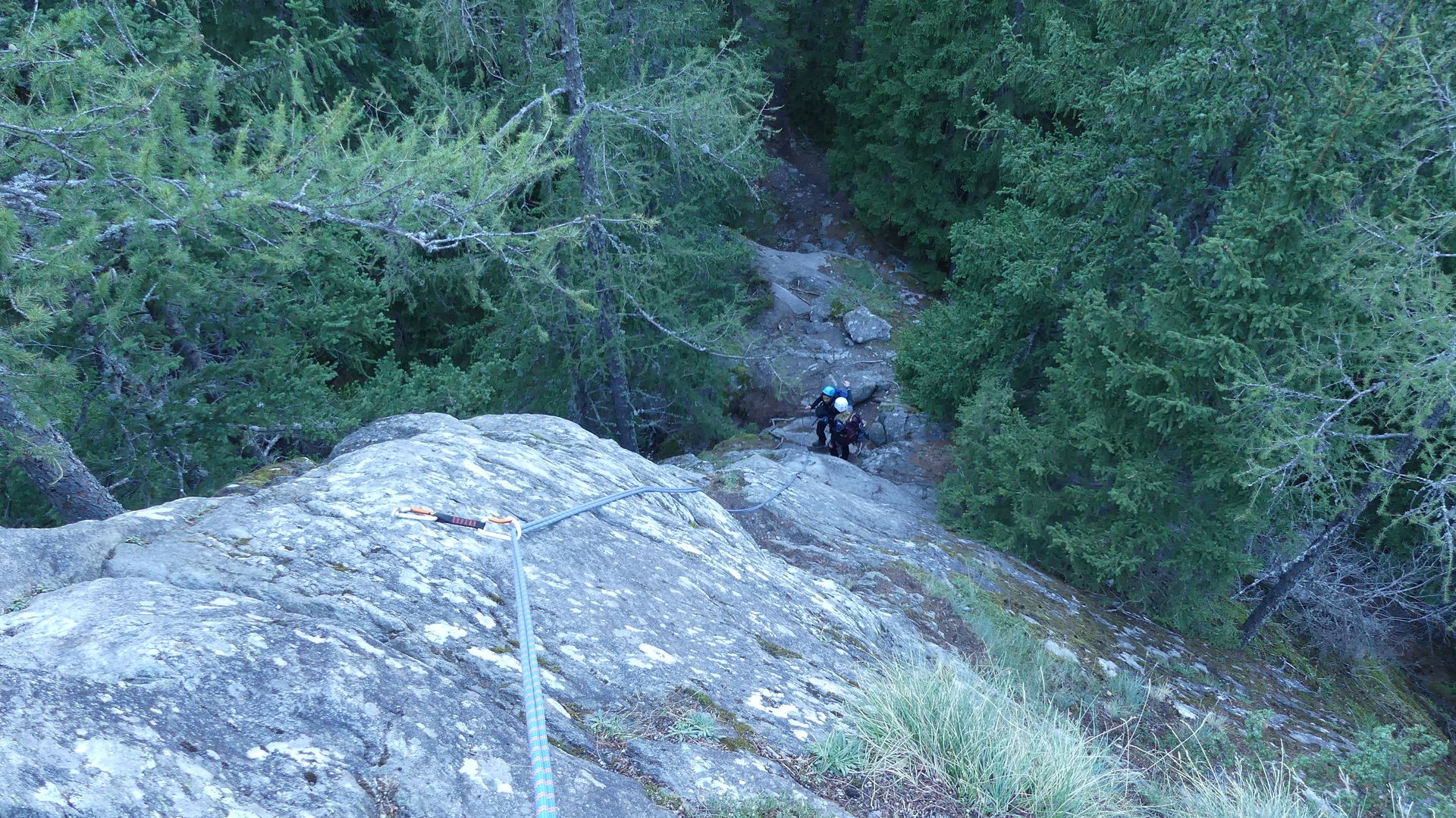 Moment vraiment ludique, dans des paysages incroyables. Les presque 600m de dénivelés se font progressivement et sans difficulté majeure, même pour des débutants comme nous. On tirera 3 longueurs relativement patinées et expo, le reste se fera en corde tendue.